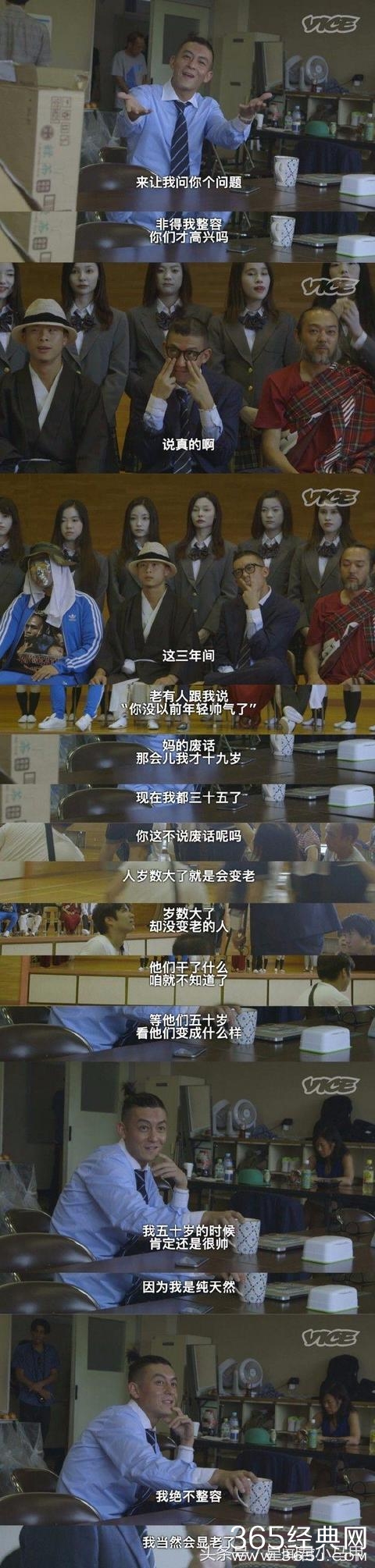 有人跟我说,我没年轻的时候帅气了。妈的废话,那会我才19岁,现在我都35了。人岁数大了就是会变老,岁数大了却没变老的人,他们干了什么咱就不知道了。我50岁的时候肯定还是很帅,因为我是纯天然,我绝不整容。