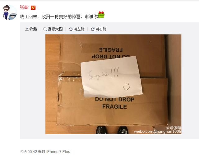 今天凌晨,张翰收工回来,收到一份意外惊喜,立刻在微博里发了出来,引来了无数粉丝的惊叹与猜想,其微博瞬间被刷爆,寂静的深夜,被粉丝们的热情所点燃!