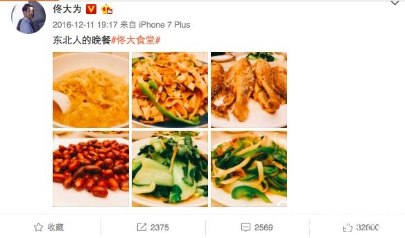 娱乐圈里“爱妻号”艺人有黄磊,黄晓明,眼下这一位,低调男艺人,佟大为先生也是出了名的“爱妻号”哦,常在微博里炫耀自己的“贤惠”,常把一些家常菜拍得美美的,专门有个“佟大食堂”供人馋嘴呀。