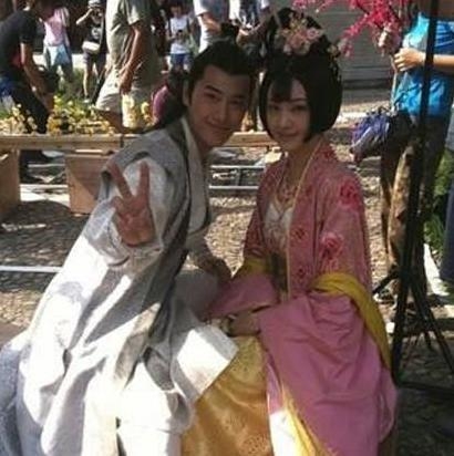 再比如这张,《太平公主秘史》中郑爽和袁弘拍摄间隙中的合照,郑爽也是笑的合不拢嘴,那时候的郑爽真的很瘦。