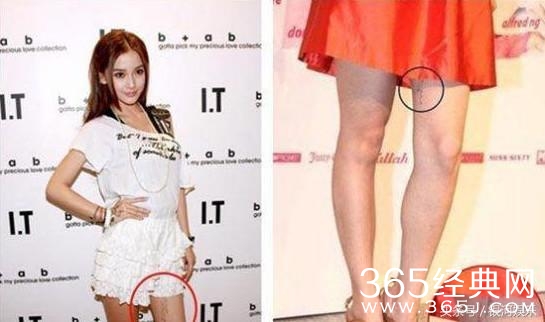 而第二个就是我们众所周知的纹身,是早期她跟陈伟霆恋爱时纹的情侣纹身,在左跨处很明显,所以后来黄晓明被采访问到,baby跟陈伟霆恋爱的时候你有什么感想?对此,黄晓明则表示本根不认识陈伟霆,估计是黄晓明吃醋了哈哈。
