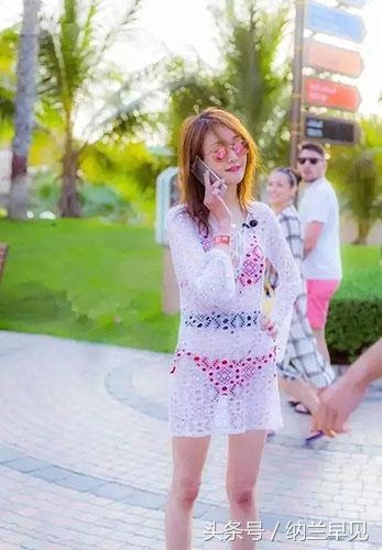 身材完美的郑爽也是也保守的姑娘,穿上泳装还要捂这么严实。