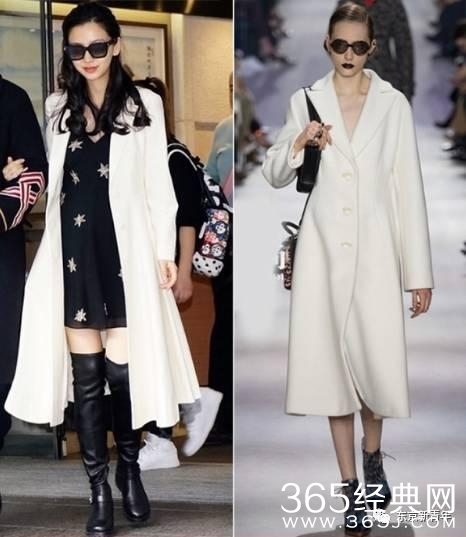 Dior大衣的款型设计一直是非常的好,收腰宽松的设计,时尚随性,搭配过膝长筒鞋,显得身材修长。黑白的搭配,形成了简单的视觉对比。简约而不简单。