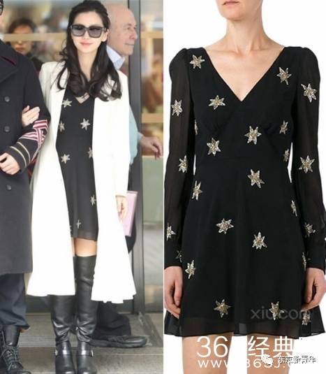 圣罗兰的黑色连衣裙,宽松得体,非常适合产后的baby.搭配六角星星设计,给单调的黑色增添了点缀。裙子的长度显得身材非常的修长。