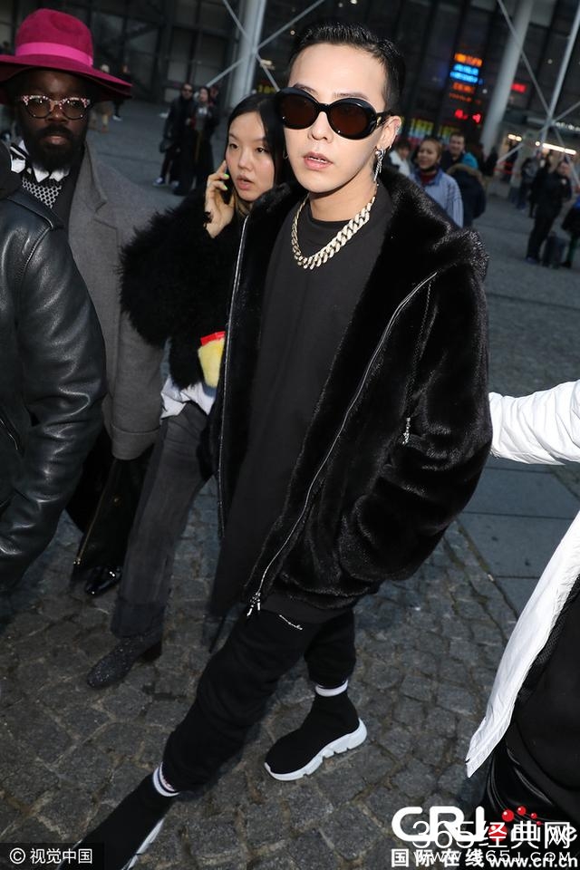 法国巴黎,当地时间1月24日,2017春夏巴黎高定时装周:Vetements 亚洲明星观秀。权志龙一袭黑衣帅气现身遭粉丝跟拍人气旺。