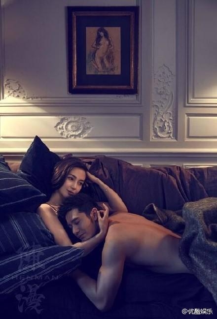 看看这张照片中 baby 的修长美腿夹住黄晓明的颈部,看样子是以电影《史密斯夫妇》为概念的拍摄,虽然电影中布莱德彼特和安洁莉娜裘莉的婚姻现在仍然让人雾里看花。但这张照片却充分还原那部动作片中两人的性感!