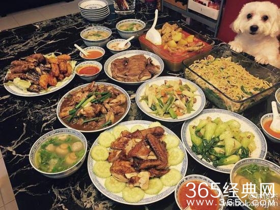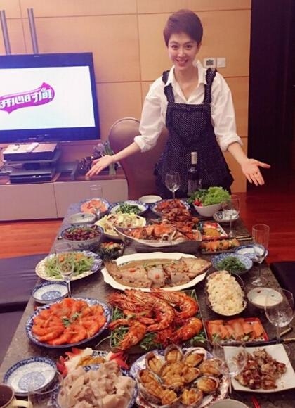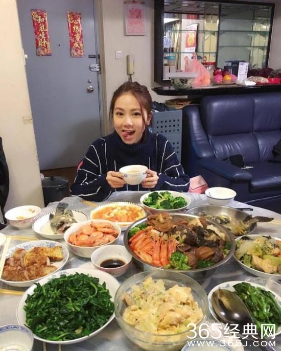 对比以上的年夜饭,郑秀文的年夜饭就显得有点家常了,中间这一碗是啥菜,你们有知道的吗?