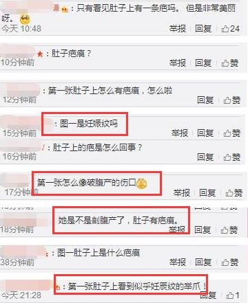 肚子上怎么会有一道刀痕呢?网友们纷纷猜测这是传说中的妊娠纹吗?