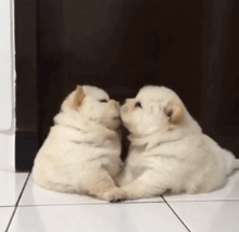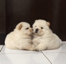 这二只小松狮正在忘我的亲亲中,突然发现有人在偷看后!