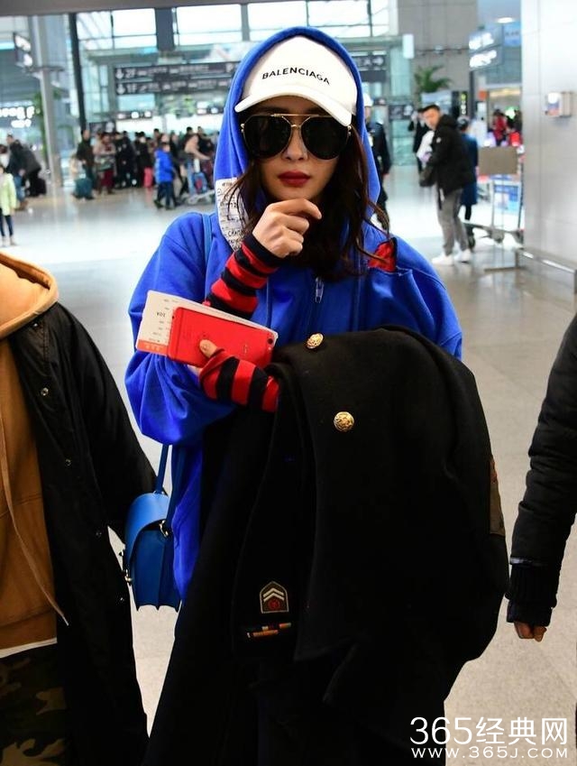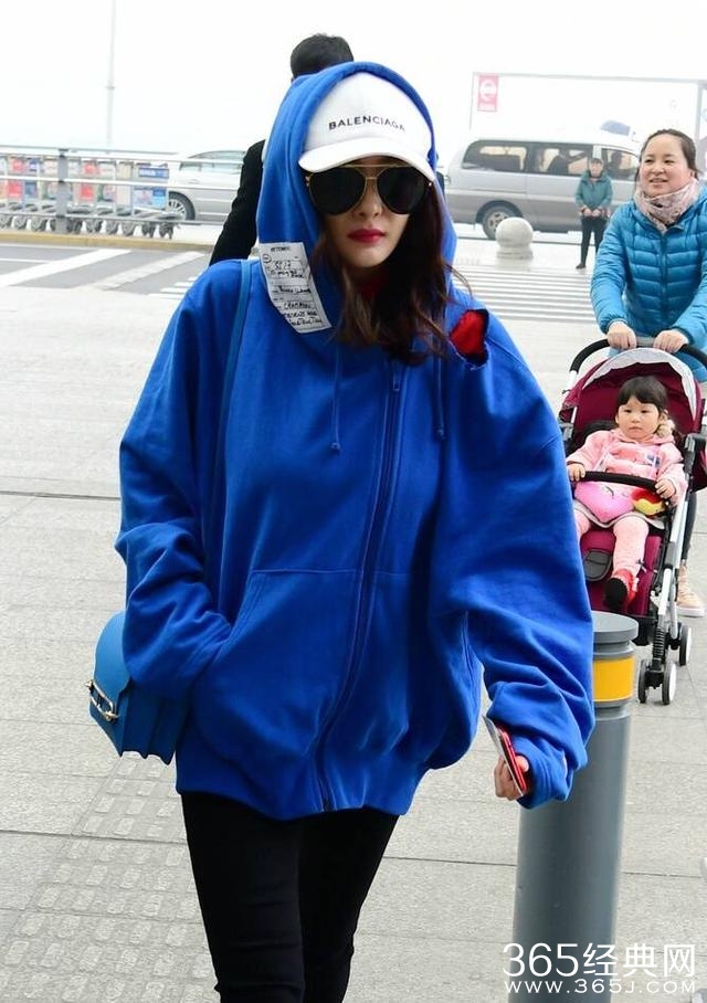 杨幂反港时穿着蓝色卫衣,颜色亮丽潮范儿十足。棒球帽也是有戴着的,到了香港只是换了个颜色。
