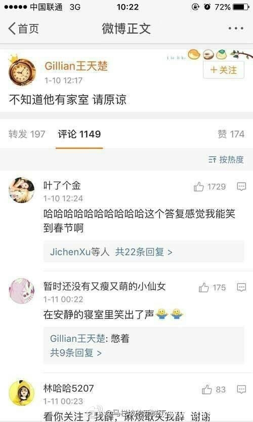 后来王天楚回应:不知道他有家室,请原谅。。。这话说出来自己都不信吧,陈思诚出轨遇上猪队友活该