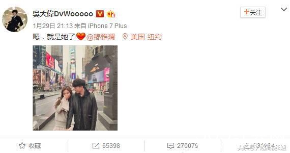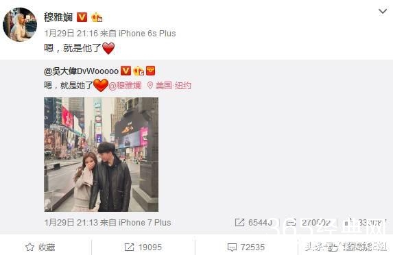 昨天,吴大伟在微博开心地宣布自己和穆雅斓在一起了。