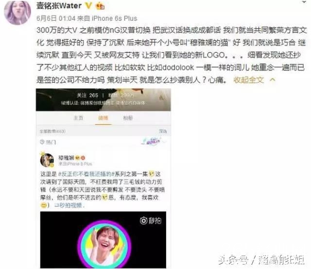 除了NG外,还被网友指出抄袭了网红软软和dodolook,连她被邓超转发的视频也涉嫌抄袭一个台湾网友。