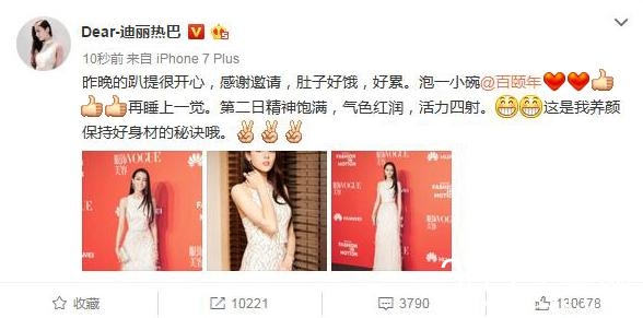 迪丽热巴最值得夸耀的地方还是其美貌!线条优美一直是人人称赞,前不久她在嶶搏爆出这么一个秘 密,↓↓↓看来是跟她的美貌有关,以致身 形如此窈 窕,圈圈也尝试 十来天,小粗 腿不见了。