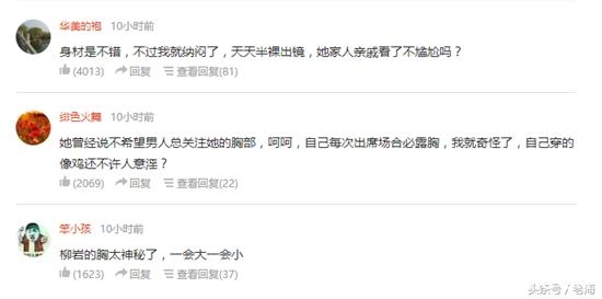有人“没觉得她漂亮,靠胸出名”,其实这也没什么不好,不管她是不是名副其实的花瓶,有一点是肯定的,如今人家也算是一线女星,相信那出场费也是蛮昂贵的。如今这个社会又有多少人会在意你是如何出名的呢?甚至有网友称现在就是“笑贫不笑娼”的时候,虽然有点过激,不过多少又有些无奈。看看如今那些艺人们一个个赚钱是如此地轻松,而且动辄就是百万的出场费,随随便便地扭下腰,在台上呆个十分钟就能卷走百万,这多少有些让人纠结。