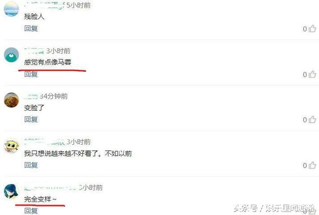 网友吐槽:残脸人了,感觉有点像马蓉了,我只想说越来越不好看了,不如以前。