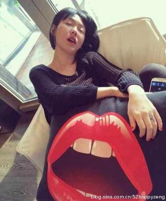 小s打瞌睡时张着嘴的形状竟和抱枕烈焰红唇的形状“神同步”,在下佩服~