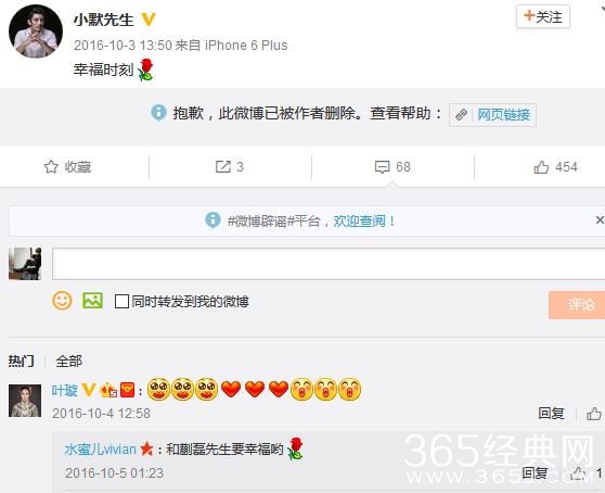 叶璇突然删除和小默先生的所有秀恩爱的信息,两人分手了?真是秀恩爱死得快。吃瓜群众想起叶璇那段话:一个女人不够优秀而被提出分手,需要检讨自己的不足和改变自己。才有可能获得幸福...