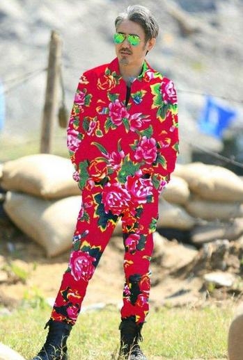 大叔吴秀波老干部气质浓厚,一头泛白的黑发戴着墨镜这样一站十分帅气,只是这一身花衣裳让吴秀波看着却像老流氓。