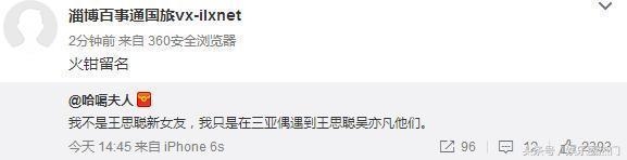 随后,有微博ID为哈噶夫人的女孩发文否定:我不是王思聪新女友