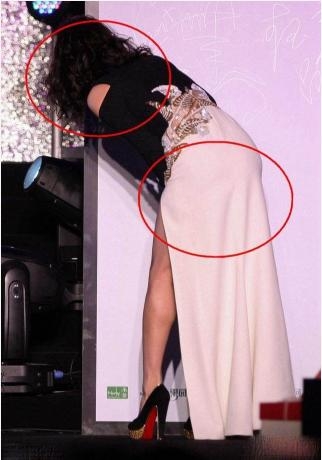 乍看没什么,但是网友评论亮了,说章子怡本身没有长腿,也没有美胸,那么平,但是却选择开叉裤+高跟鞋,突出了自己的美腿。