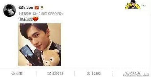 前不久,杨洋微博晒了一张抱着奖杯与小熊的自拍照,“信任彼此”这四个字先放一边不说。先说小熊