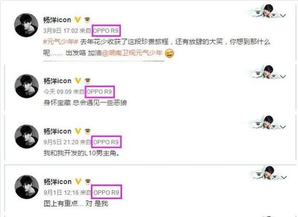 杨洋,同样作为oppo的代言人,也是尽职尽责的用其代言的oppo手机。