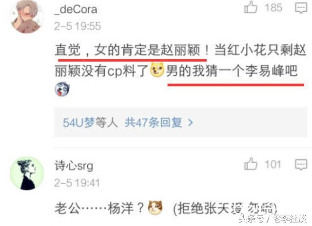 而在昨天,微博上卓伟的徒弟:狗仔大圣。爆料:你们的老公+当红小花=超强CP,看来今天会哭倒一片了。暗指可能是赵丽颖和李易峰。而网友也纷纷评论极有可能是他们两个。