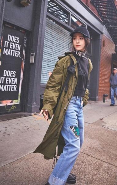瘦身成功之后的范小胖在异国为奉上一组帅气写真,军绿色大衣真心帅气,卷刘海马尾辫+帽子,秒变帅气街头风。