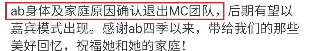 据说baby退出录制是因为家庭原因,毕竟baby现在的身体还是太虚弱,可能还是不足以支持《跑男》的录制吧~据说后期有望以嘉宾的模式出现