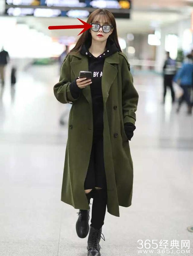 虽然这身造型很好看,但是网友却吐槽这是摆拍,从她戴的墨镜的反光可以看出前面专门有人在拍。