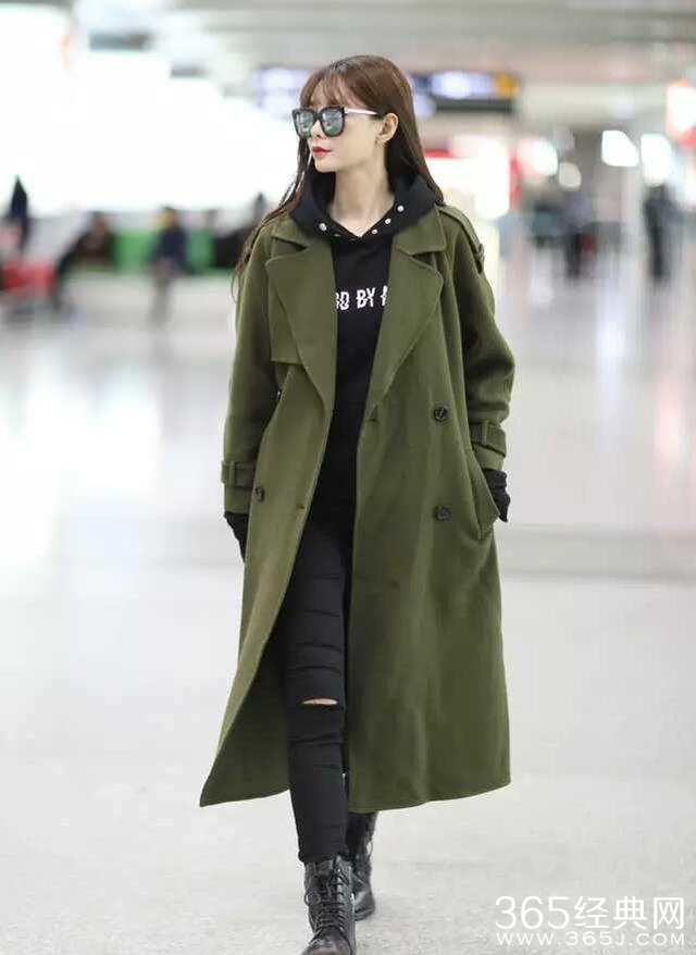 近日她就现身机场,准备去横店拍戏。看这一身装扮,霸气十足,军绿色风衣显得她愈发的高挑。