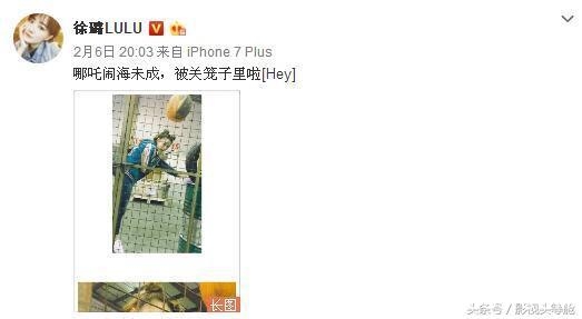 2月6日,徐璐更新微博,并附文哪吒闹海未成,被关笼子里啦[Hey]。