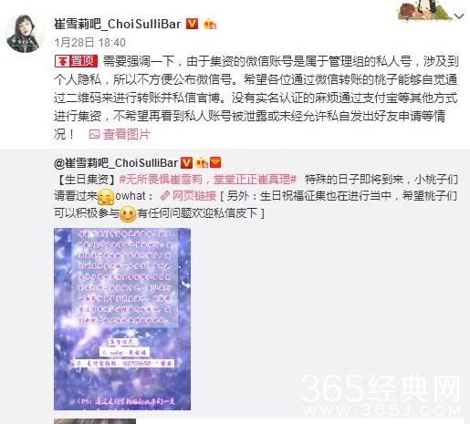 最近崔雪莉临近生日,小编发现一位昵称崔雪莉吧_ChoiSulliBar认证微博发起应援崔雪莉活动。
