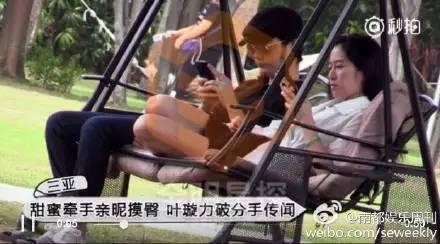 叶璇小鸟依人般依偎在男友的身上