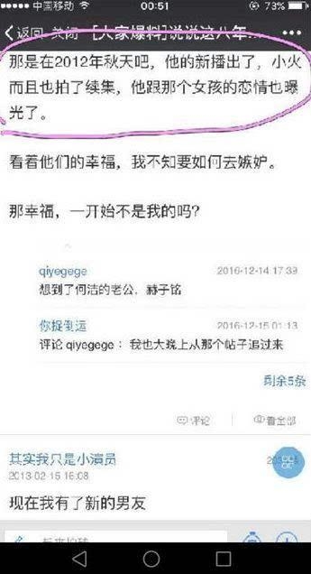 之前前女友还在某论坛说当时自己的男友遇见了一个选手歌手,觉得选秀歌手能够给自己前途带来资源。然后就分手了。这么渣。很多人但是都说是赫子铭何洁。