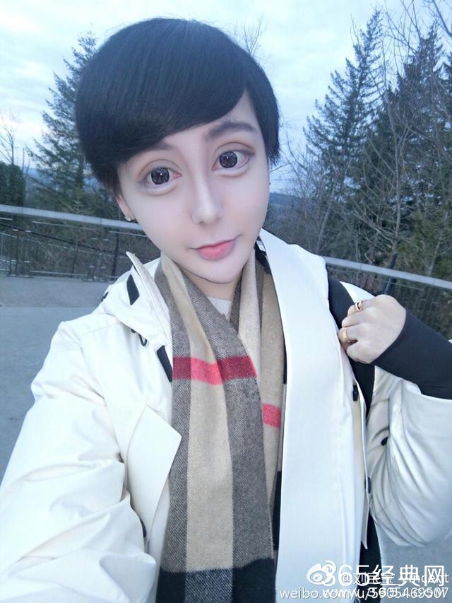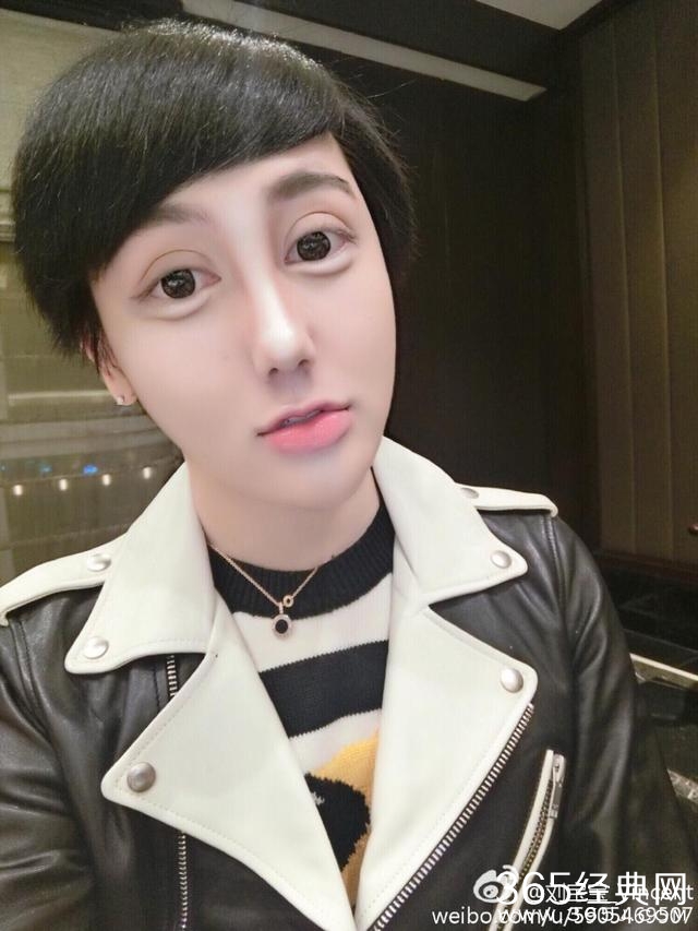 刘梓晨不但整容,还非常热衷于P图,他喜欢尖下巴,大眼睛,正如他微博简介写的那样——梦想是成为芭比。