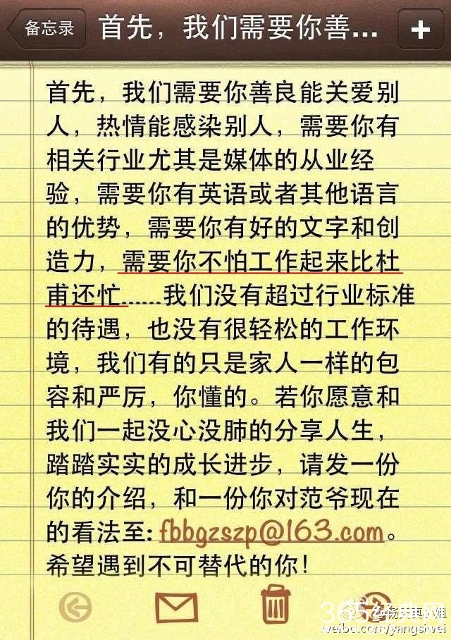 范冰冰工作室在2012年的时候招聘的广告真的是……我看着都不想去啊,即便可以和范冰冰一起工作。