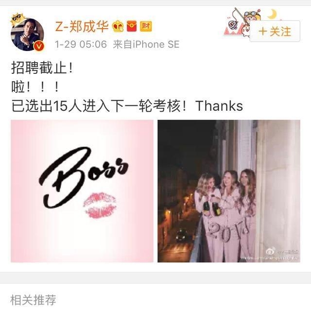 再来看看爽妹子郑爽的,郑爽前几天就刚刚招募了十五个员工,还是从粉丝当中选的~