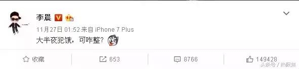 在秀完恩爱后,一直在忙“脑力”劳动的李晨,体力终于支撑不住了,发微博称“大半夜犯饿,可咋整?”