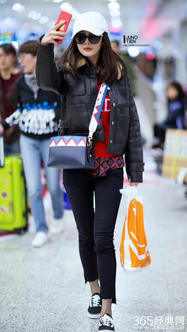 大幂幂在生活中还是比较爱自拍的,对于自己的颜值也还是很满意的!所以屋里大幂幂在机场走路的间隙,还不忘记自拍!
