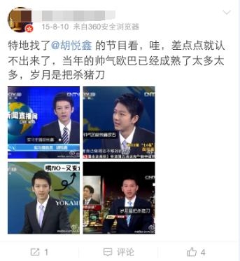 同样挨刀的还有一位,5年前,被网友称为韩庚+吴彦祖+柯震东+林更新和体的央视男主播胡悦鑫!大家还记得不?
