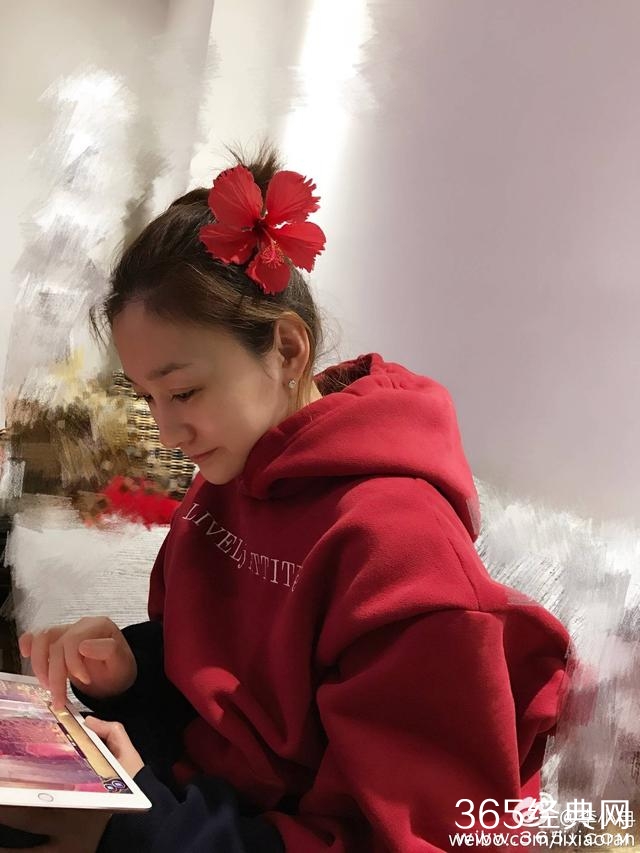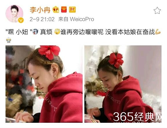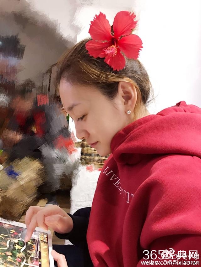 照片中李小冉素颜还头戴大红花真是美艳动人,哈哈哈…