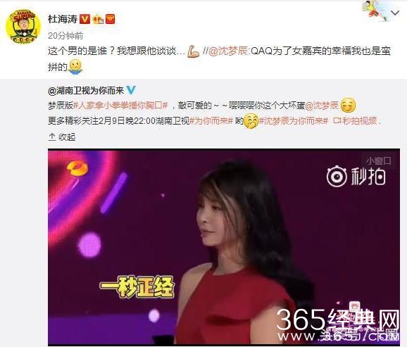 吴昕和杜海涛搭档甚至一度曾经传过绯闻,虽然两人都已经否认,特别是如今杜海涛沈梦辰的“恋情”疑似曝光,就前几日杜海涛还在微博公然吃醋,说要找沈梦辰在节目上撒娇玩小拳拳捶胸口的那个男人谈谈