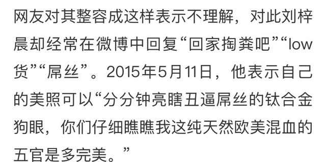 因为整容及在微博夸张p图并且炫富而走红网络。网友对他整容过的形象评价为“蛇精男”。