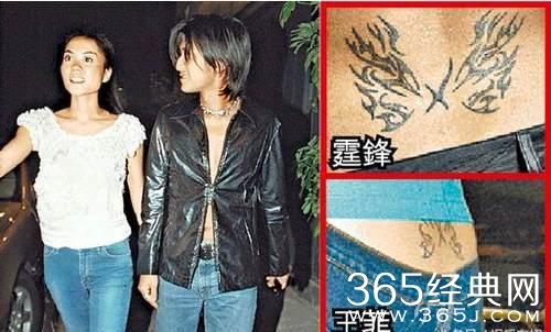 纹了爱的纹身的明星不单单是陆毅一家,姐弟恋王菲与谢霆锋也有喔,他们的纹身是蝴蝶,含义比翼双飞。