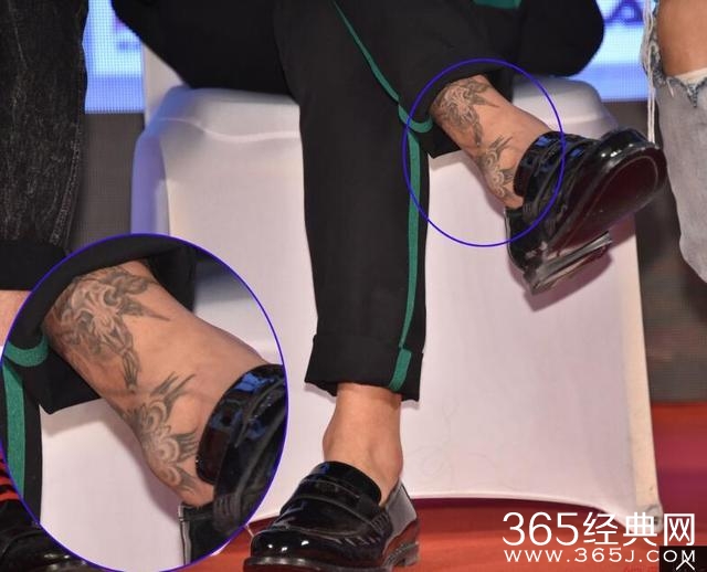在脚上的纹身应该都是不想让人看到的,但韩庚在参加活动的时候太激动了,所以露出了马脚。