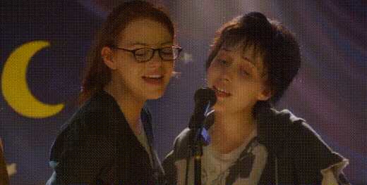 另一部青春片《校园兔女郎》中,她是闪耀的兔女郎身边不起眼的小姑娘兼好闺蜜,姐妹团曾有一幕上台唱K的尴尬戏码,石头姐故意收敛好嗓子,与一众素颜姐妹合唱“好和谐”……这也算是她“初试啼音”吧?