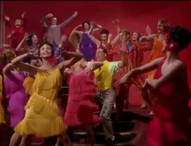 这段红男绿女一同上阵的“人生蒙太奇”片段同样是在致敬《雨中曲》结尾的精彩歌舞场面~