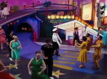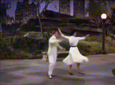 后来俩人开始欢乐的转圈圈,致敬的是1953年的《龙国香车》,但有点小难度的台阶舞步去掉了~